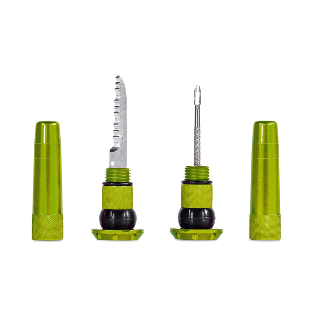 Jedes leichte und robuste Set enthält alles, was Sie brauchen, um wieder fahren zu können, wenn Sie mit einem Loch zu kämpfen haben, das sich einfach nicht schließen lässt: eine 2-in-1-Reibahle aus rostfreiem Stahl, eine Vielzahl von Reifenschnecken in verschiedenen Größen und ein Trimmmesser.