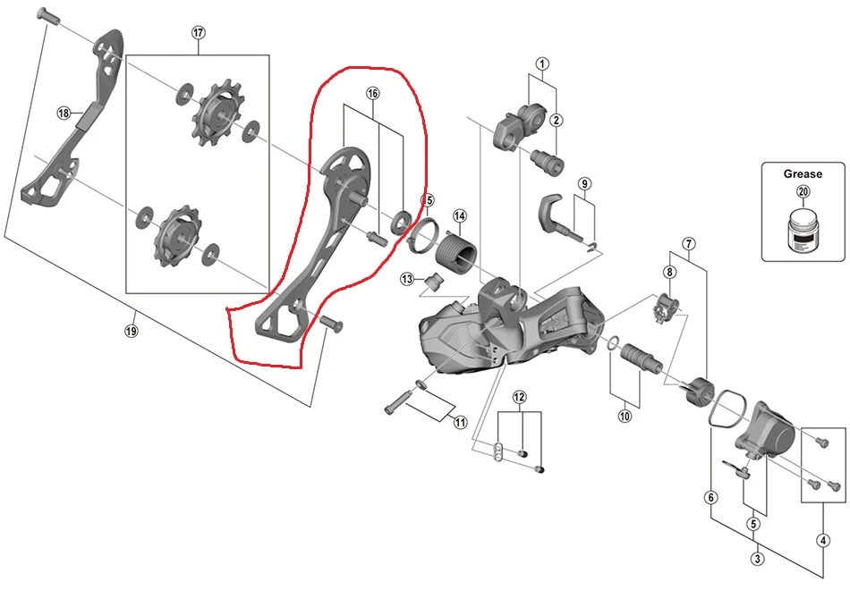 Shimano GRX RD-RX817 Schaltwerk Leitblech aussen.
